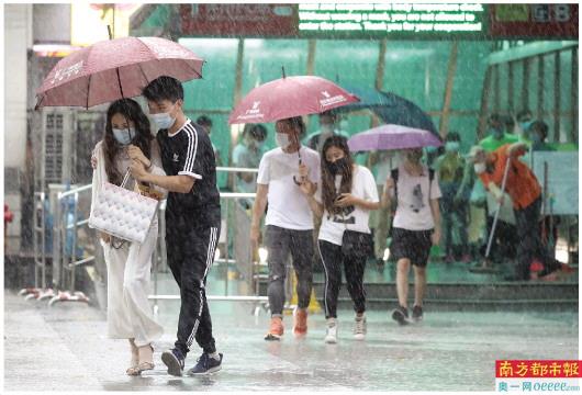 昨日中午,广州体育中心地铁站外,突然的暴雨让行人措手不及。受冷空气影响,昨日广州先后有10个区(除增城区)发布了暴雨黄色预警信号。广州市气象局提醒,预计今明两日广州有中到强雷雨局部暴雨,局地伴有短时强降水。 南都记者 邹卫 摄