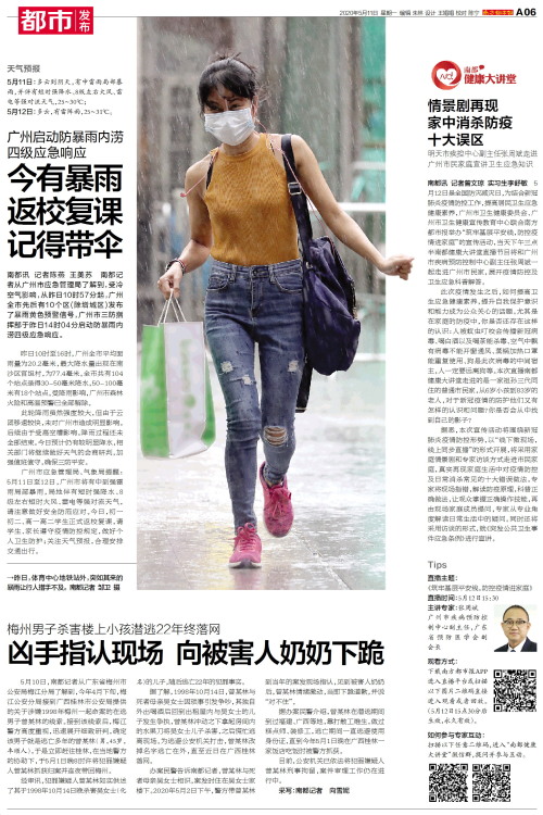 天气预报5月11日:多云到阴天,有中雷雨局部暴雨,并伴有短时强降水、8级左右大风、雷电等强对流天气,25~30℃;5月12日:多云,有雷阵雨,25~31℃。南都讯 记者陈燕 王美苏 南都记者从广州