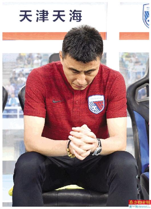 2019年6月16日,以教练组组长身份重返天津天海一线队的李玮锋在比赛前。 新华社发