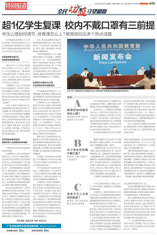 超1亿学生复课 校内不戴口罩有三前提