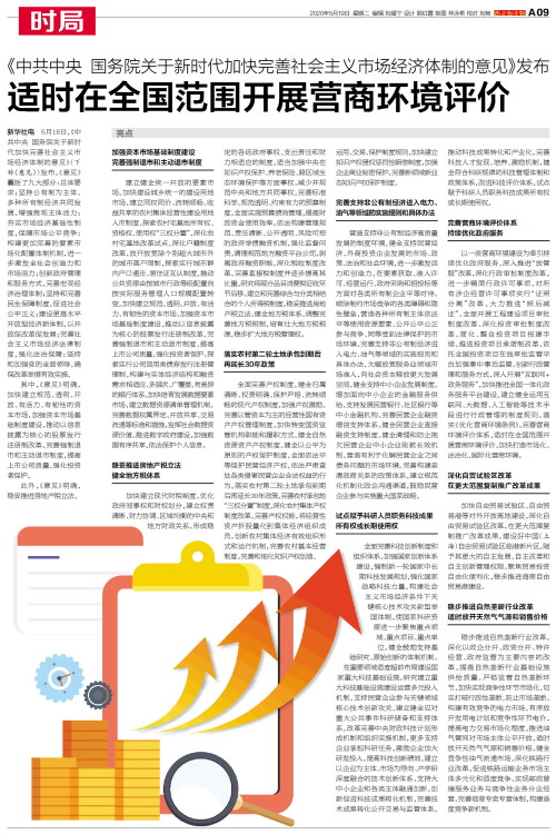 新华社电 5月18日,《中共中央 国务院关于新时代加快完善社会主义市场经济体制的意见》(下称《意见》)发布。《意见》囊括了九大部分:总体要求;坚持公有制为主体、多种所有制经济共同发展,增强微观主体活力