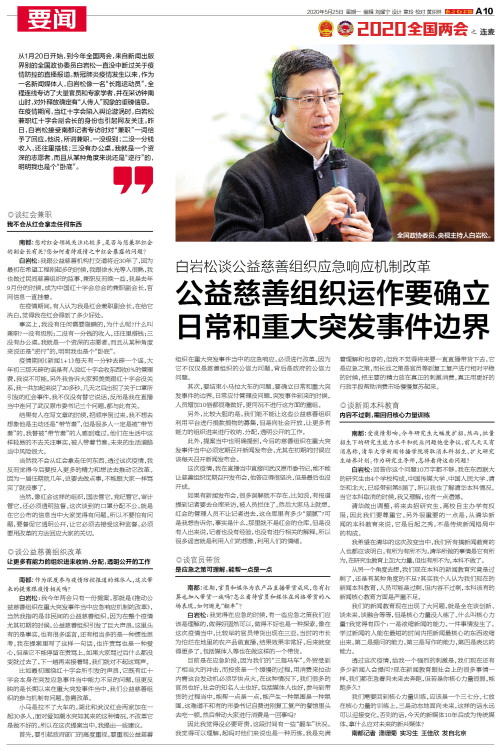 从1月20日开始,到今年全国两会,来自新闻出版界别的全国政协委员白岩松一直没中断过关于疫情防控的直播报道。新冠肺炎疫情发生以来,作为一名新闻媒体人,白岩松像一名“长跑运动员”,全程连线专访了大量官员和