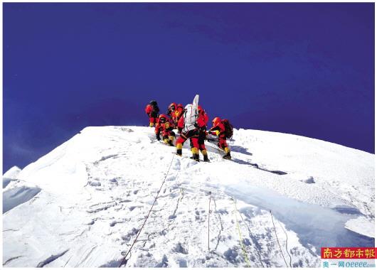 昨日,2020珠峰高程测量登山队8名攻顶队员成功登顶世界第一高峰珠穆朗玛峰。他们在峰顶竖立觇标,开展测量工作。45年前的今天,中国人首次将觇标带至珠峰峰顶。还需2到3个月的时间,进行综合计算,才会得出并公布珠峰确切“身高”。 新华社发