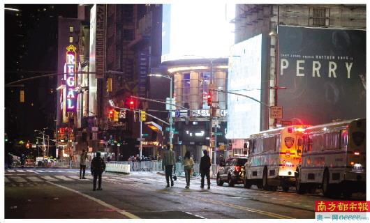 6月1日,在美国纽约,几名行人走在宵禁后的大街上。
