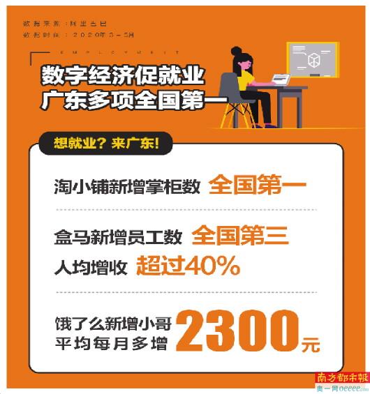 淘宝直播新增主播数全国第一、V字反弹小店数全国第一、淘小铺新增掌柜全国第一、盒马新增员工全国第三……疫情为各行各业带来了巨大的挑战,但数字经济和数字消费却让广东在这期间抓住了机遇,更带来了不少新岗位。