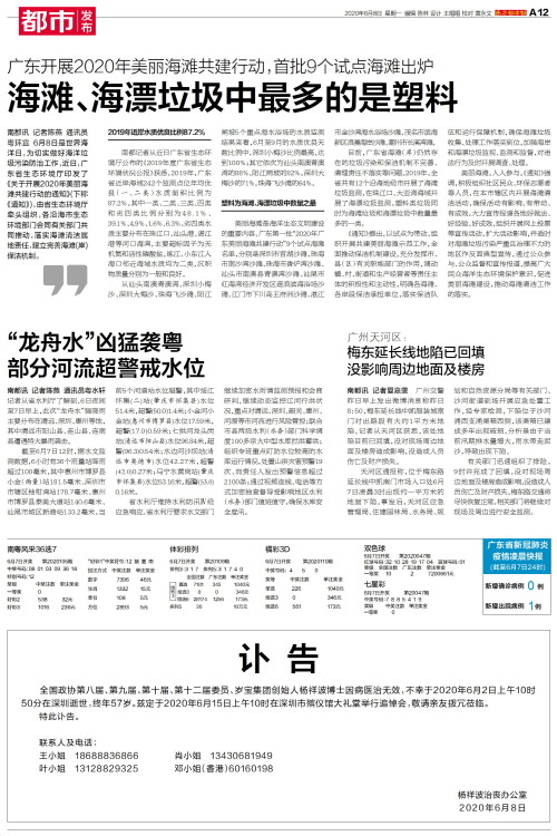 南都讯 记者陈燕 通讯员粤环宣 6月8日是世界海洋日,为切实做好海洋垃圾污染防治工作,近日,广东省生态环境厅印发了《关于开展2020年美丽海滩共建行动的通知》(下称《通知》),由省生态环境厅牵头组织,