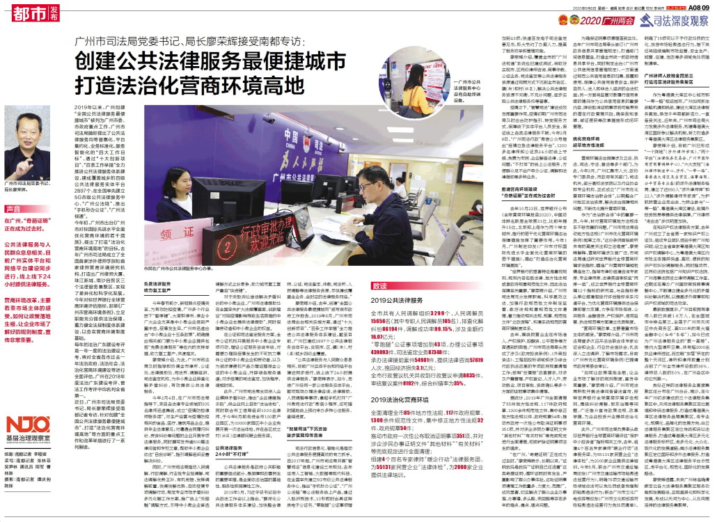 2019年以来,广州创建“全国公共法律服务最便捷城市”被列为广州市委、市政府重点工作,广州市司法局随即提出了公共法律服务均等普惠化、平台集约化、业务标准化、服务智能化的“四大工作目标”,通过“十大创新