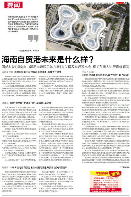 海南自贸港未来是什么样子?未来的“购物天堂”究竟有多省钱?老百姓从中可以获得哪些红利?6月8日,国新办就《海南自由贸易港建设总体方案》有关情况举行发布会,国家五部委相关负责人及海南省委书记、省长共同出席,对热点问题进行详细解答。