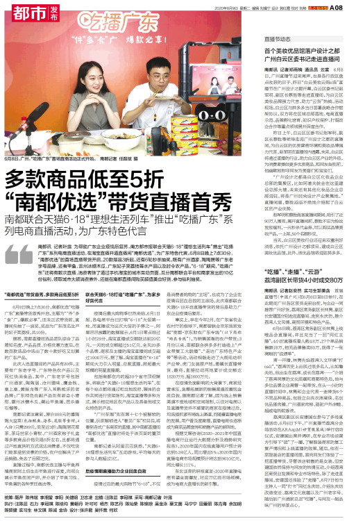 南都讯 记者叶露 为帮助广东企业疫情后复苏,南方都市报联合天猫6·18“理想生活列车”推出“吃播广东”系列电商直播活动,在淘宝直播开通直播间“南都优选”,为广东特色代言。6月8日晚上7点30分,“南都