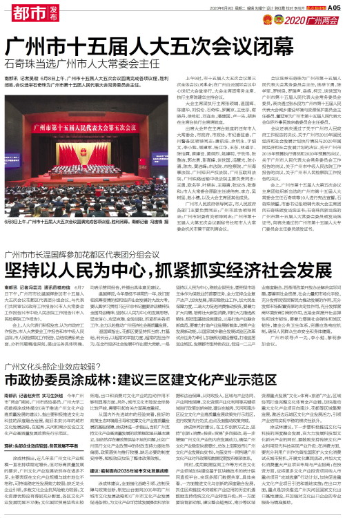 南都讯 记者吴璇 6月8日上午,广州市十五届人大五次会议圆满完成各项议程,胜利闭幕。会议选举石奇珠为广州市第十五届人民代表大会常务委员会主任。上午9时,市十五届人大五次会议第三次全体会议(闭幕会)在广