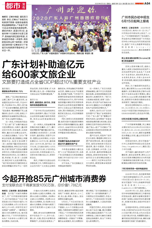南都讯 记者许晓蕾 通讯员刁定宏 昨日,记者从广东省文化和旅游厅获悉:经报请省疫情防控指挥部同意,广东省于5月15日正式恢复省内旅游经营。据初步统计,截至6月3日,全省共有1102家旅行社复工复产,各