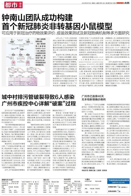 6月12日,广州市人民政府新闻办公室举行第125场疫情防控复工复产新闻发布活动(广州抗疫力量发布专场)。会上,呼吸疾病国家重点实验室副主任赵金存发布了钟南山院士指导团队的重要科研成果。赵金存介绍,在钟