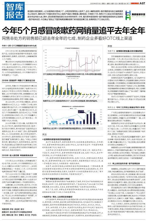 新冠肺炎疫情期间,人们去医院的次数减少了,上网买常用药的人变多了。近日,南都互联网+医疗课题组与赛立信数据资讯公司合作,调研分析了天猫与京东平台上相关产品的订单数据。调研发现,今年前5个月,网售OTC