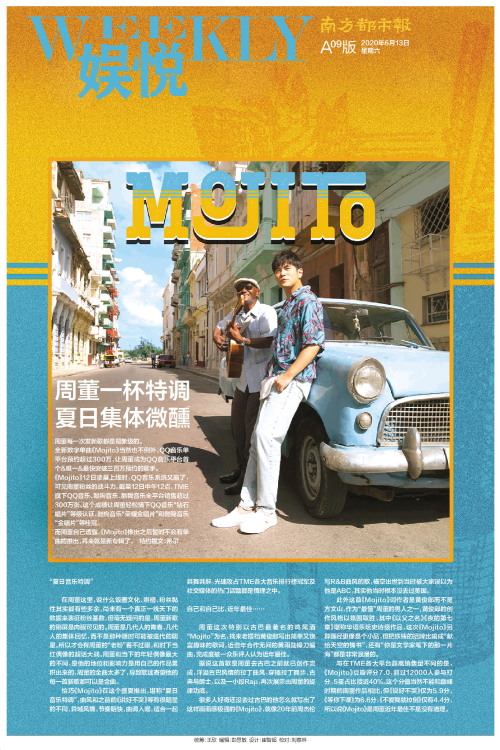 周董每一次发新歌都是现象级的。全新数字单曲《Mojito》当然也不例外,QQ音乐单平台预约超过300万,让周董成为QQ音乐平台首个&唯一&最快突破三百万预约的歌手。《Mojito》12日凌晨上线时,Q