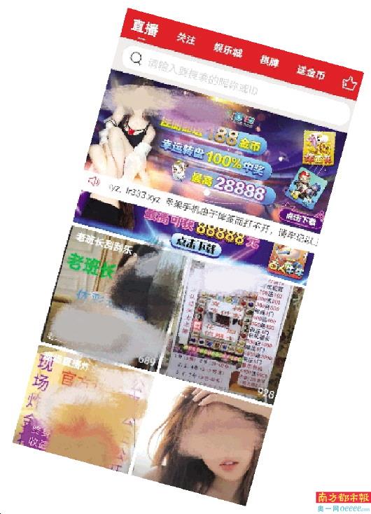 南都记者此后进一步调查发现,在色播平台上还充斥着炸金花、轮盘、赌球等各类赌法、广告,色赌合流——有色情直播间暗藏赌博游戏链接;有主播在平台开设赌局,通过播放淫秽视频留住观众;还有主播打出充值送“看片神器”广告,筹集赌资;更有人直播带“赌”诱球迷投注,用充值可私下见面交友等色诱男性球迷参赌。