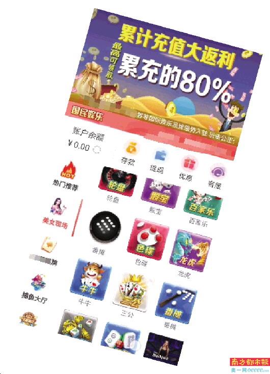 为吸引网友参赌,“米某某直播”平台在直播间内也投放了进入游戏大厅的链接,链接图标注有“棋牌”、“分秒万贯缠腰”等字眼。游戏板块还设置了“首充即送”“充值任意金额送100元”“累充大返利”等活动。