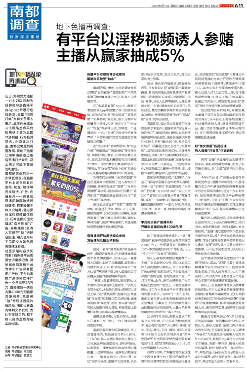 有平台以淫秽视频诱人参赌 主播从赢家抽成5%