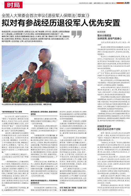 备受退役军人关注的《退役军人保障法》立法,有了新进展。6月18日,退役军人保障法草案提请十三届全国人大常委会第十九次会议审议,意味着离落地实施又向前迈进了一步。南都记者了解到,这是该法律草案首次提请人