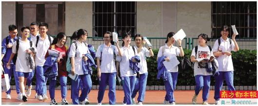 ↑2019年6月7日,广州市第七中学考点,考生们集体前往考场,大多数人手上都拿着外套以防着凉。而今年高考正逢酷暑,需要降温。 南都记者 冯宙锋 摄