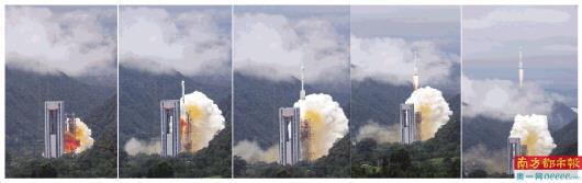 昨日9时43分,大雨过后的西昌发射场云雾缭绕。01指挥员尹相原下达点火口令后,乳白色的长征火箭托举着卫星缓缓升空。