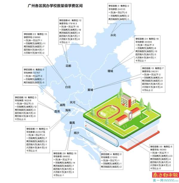 花都民校最多 黄埔平均学费最高