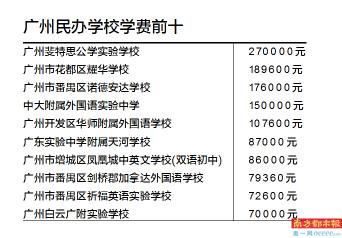南都讯 广州民办学校学费再创新高,一年学费270000元的广州斐特思公学位列榜首,刷新了广州民校收费的最高纪录。今年广州市共有200所民办初中招生。今年民校小升初新政,最大的变化是,报名人数超过招生人数的学校要实行电脑摇号;没有宿位的学校只能在本区招生,而有宿位的学校外区招生不得超过50%。今年除了民办学校学费刷新最高纪录外,有民校学费的涨幅也较为惊人,最高涨幅可达133%。