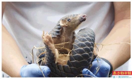 广东省野生动物救护中心工程师侯方晖告诉记者,该穿山甲是潮州市湘桥区芦庄村民在一处养鸡场发现的,当时被3只狗围攻,村民听到狗吠声后赶来一看,发现是穿山甲。随即上报潮州市林业局,工作人员赶到后,成功让它“狗口脱险”,并暂放于潮州市西湖动物园。