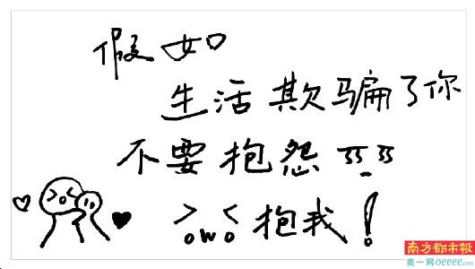 王洛还曾给情绪不佳的学生画了漫画鼓励,上面写着“假如生活欺骗了你,不要抱怨,抱我”,并画了两个拥抱的小人儿。