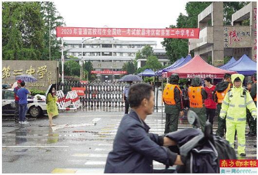 8日上午,歙县二中门口洪水已退去,考生可正常进入考场。