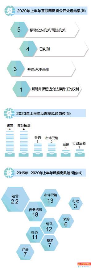 值得注意的是,2020年上半年曝出反腐案件的互联网公司中,多数公司通过自我审查、自行通报的方式发现和举报反腐行为,这意味着互联网公司对腐败舞弊的打击行为已成为常态化。