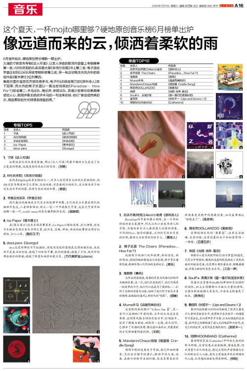 6月佳作如云,硬地原创音乐榜新一期出炉。久违的寸铁发布专辑《近人可读》,以发人深省的歌词内容登上专辑榜单第一名;AR刘夫阳的扎实说唱大碟《非流行说唱》冲上第二名;电子组合宇宙企划则以乐队同名专辑斩获第