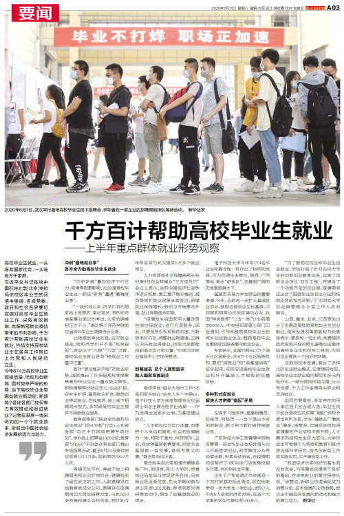 高校毕业生就业,一头连着国家社会,一头连着万千家庭。习近平总书记在给中国石油大学(北京)克拉玛依校区毕业生的回信中强调,各级党委、政府和社会各界要切实做好高校毕业生就业工作,采取有效措施,克服新冠肺炎