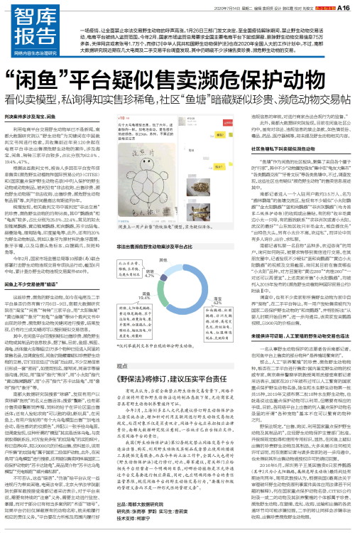 今年2月,上海30多名人大代表建议修订野生动物保护法上海实施办法,增加针对利用互联网进行野生动物交易相关规定,处罚对象不仅是买卖双方,网络平台也应承担相应法律责任。南都大数据研究院注意到,一些地方已出台相应文件,压实网络平台的责任。