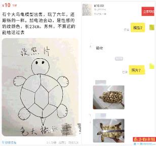 南都大数据研究院搜索“球蟒”,发现有用户以卖球蟒“抱枕”的名义出售活体;搜索“鬣蜥”,也有部分售卖绿鬣蜥饲养箱、饲料的帖子在评论区里出售活体;还有人发帖求购“可以跑的绿L蜥玩具”。在闲鱼上,有用户发帖称“有个大乌龟模型出售”“加电池会动,是性感的豹纹颜色”,并配以一张手绘乌龟图。但调查发现,这种所谓的“模型”其实是活体乌龟。与卖家取得联系后,对方发来多张“豹纹陆龟”的实拍照片,称已自养6年,现以9000元的价格出售。资料显示,该用户所售“豹纹陆龟”属于国家二级保护动物。此外,在闲鱼用“乌龟模型”进行搜索,还有疑似售卖同样是国家二级保护动物的“苏卡达陆龟”,商品简介称“苏卡达乌龟模型”“充电能跑”“感兴趣私聊”。