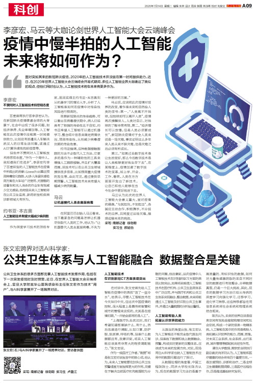 面对突如其来的新冠肺炎疫情,2020年的人工智能技术并没能在第一时间提供助力。近日,在2020年世界人工智能大会云端峰会开幕式期间,多位人工智能业界大咖表达了类似的观点,但他们同时也认为,人工智能技术