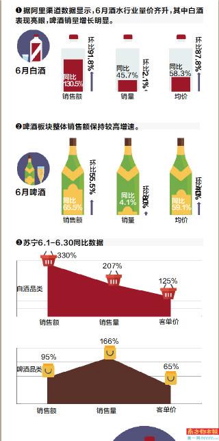 苏宁易购相关负责人给到本课题组的数据显示,今年6月,啤酒品类销售额同比增长95%,销售量同比增长166%,客单价同比增长65%。