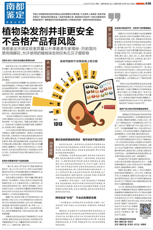 市面上种类繁多的染发剂使染头发变得更加方便快捷,不过很多人有疑虑:染发剂是否有毒?植物染发剂更安全?染发剂品牌众多,其质量状况如何?如何正确选购和使用染发剂?南都鉴定评测实验室质量公开课邀请专家一起揭开染发剂的奥秘。
