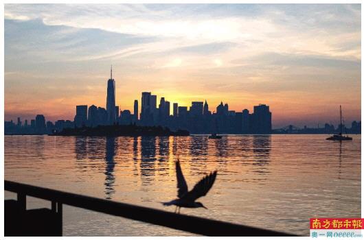 7月19日,日出时分的美国纽约曼哈顿下城。 新华社图
