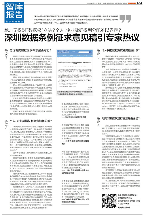 深圳市司法局7月15日发布《深圳经济特区数据条例(征求意见稿)》,这也是全国首个提出个人享有数据权的政府文件。全文103条,亮点颇多,不少法学专家肯定深圳地方立法的勇于创新。与此同时,征求意见稿中的“