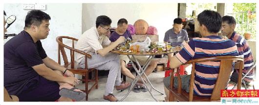 吴添乐和团队成员一起品尝荔枝,聊最新的嫁接、驱虫技术。