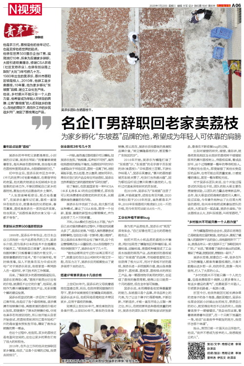 他是农三代,荔枝是他的童年记忆,也是支撑他看世界的起点。他曾在世界500强日企当IT男,摸爬滚打10年,后来为反哺家乡辞职,大胆引进欧美理念,修建CSA农场(社区支持农业),也曾在创业路上踩到“大坑”