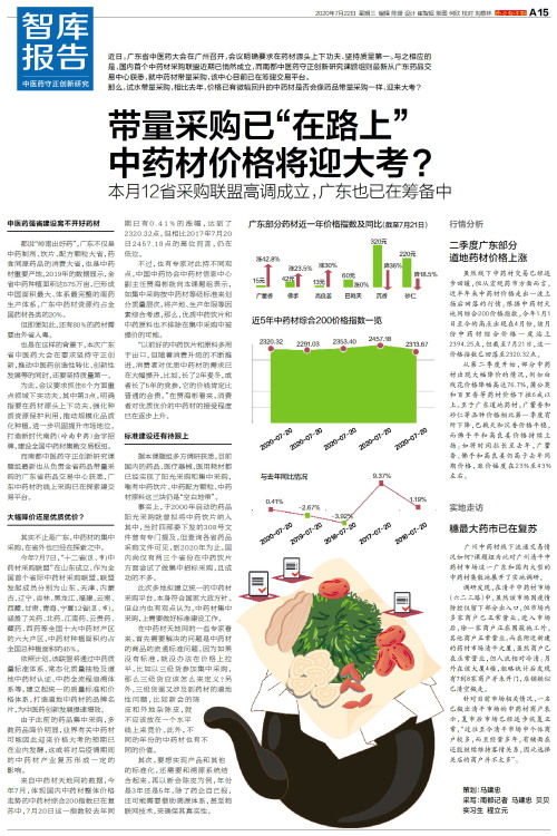 近日,广东省中医药大会在广州召开,会议明确要求在药材源头上下功夫、坚持质量第一。与之相应的是,国内首个中药材采购联盟近期已悄然成立,而南都中医药守正创新研究课题组则最新从广东药品交易中心获悉,就中药材