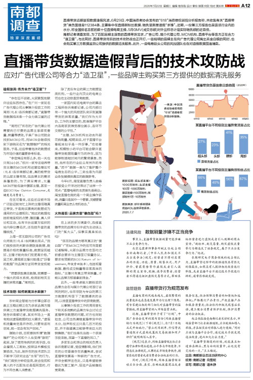 直播带货近期屡现数据造假风波。6月29日,中国消费者协会发布的“618”消费维权舆情分析报告称,共收集有关“直播带货”类负面信息112384条,主要集中在直播刷粉丝数据、销售量刷单造假“杀雏”。近期,