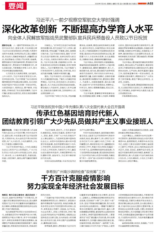 南都讯 南方日报记者徐林 通讯员岳宗 7月22日,省委书记李希到广州市南沙区,深入重点项目建设现场和科技企业,就认真贯彻落实习近平总书记重要讲话和重要指示批示精神,统筹推进疫情防控和经济社会发展工作进