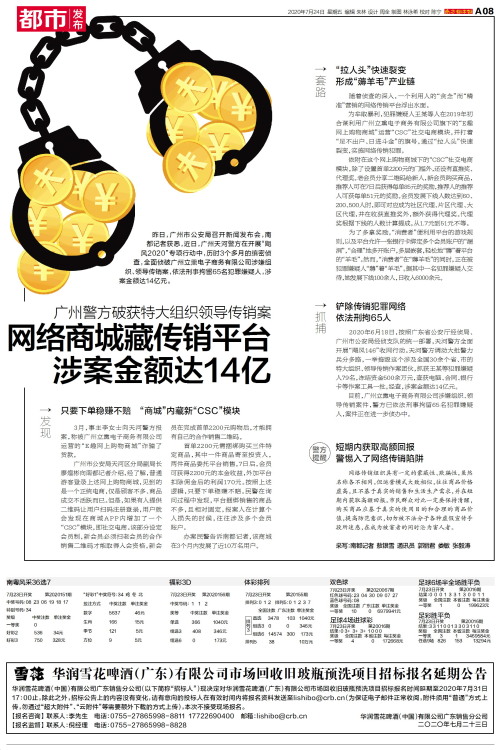 昨日,广州市公安局召开新闻发布会,南都记者获悉,近日,广州天河警方在开展“飓风2020”专项行动中,历时3个多月的缜密侦查,全面侦破广州立熏电子商务有限公司涉嫌组织、领导传销案,依法刑事拘留65名犯罪