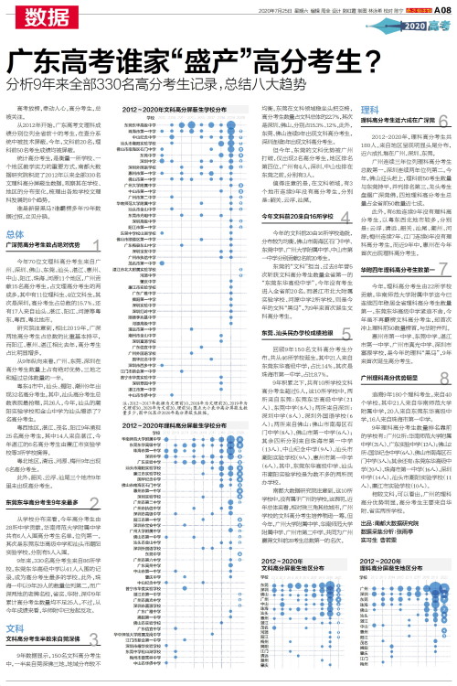 高考放榜,牵动人心。高分考生,总被关注。从2012年开始,广东高考文理科成绩分别位列全省前十的考生,在查分系统中被技术屏蔽。今年,文科前20名,理科前50名考生成绩均被屏蔽。统计高分考生,是衡量一所学
