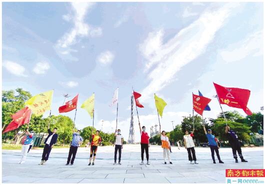 昨日,2019年度最美广州街坊暨“广州街坊”品牌队伍颁奖礼在广州举行。颁奖礼结束后,十支“广州街坊”品牌队伍的代表在花城广场合影留念。 南都记者 马强 摄