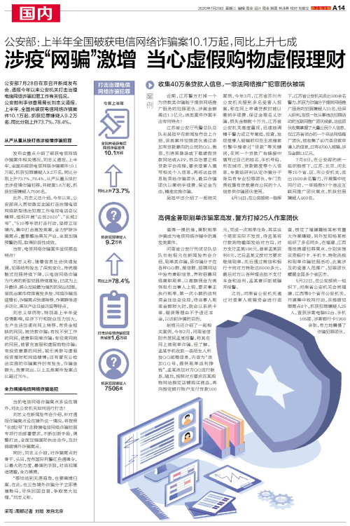 公安部7月28日在京召开新闻发布会,通报今年以来公安机关打击治理电信网络诈骗犯罪工作有关情况。公安部刑事侦查局局长刘忠义通报,上半年,全国共破获电信网络诈骗案件10.1万起,抓获犯罪嫌疑人9.2万名,