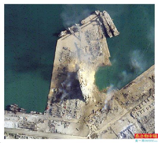 爆炸后 爆炸前后贝鲁特港区的卫星照片对比。