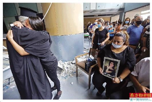 ←6日,在黎巴嫩首都贝鲁特一家医院,人们哀悼在爆炸中遇难的亲人。